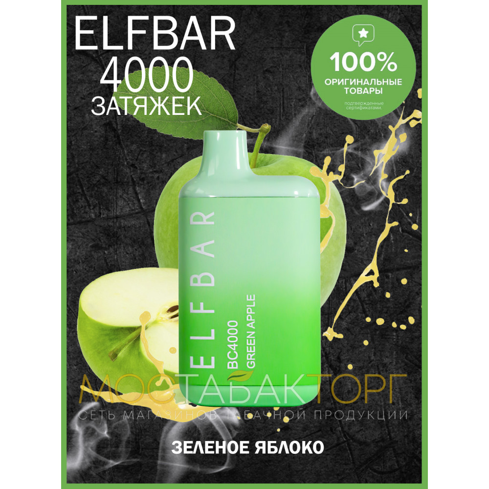 | Elf Bar видыBC 4000 | Elf Bar вкусыЗелёное Яблоко | Elf Bar количество в блоке10 шт |
