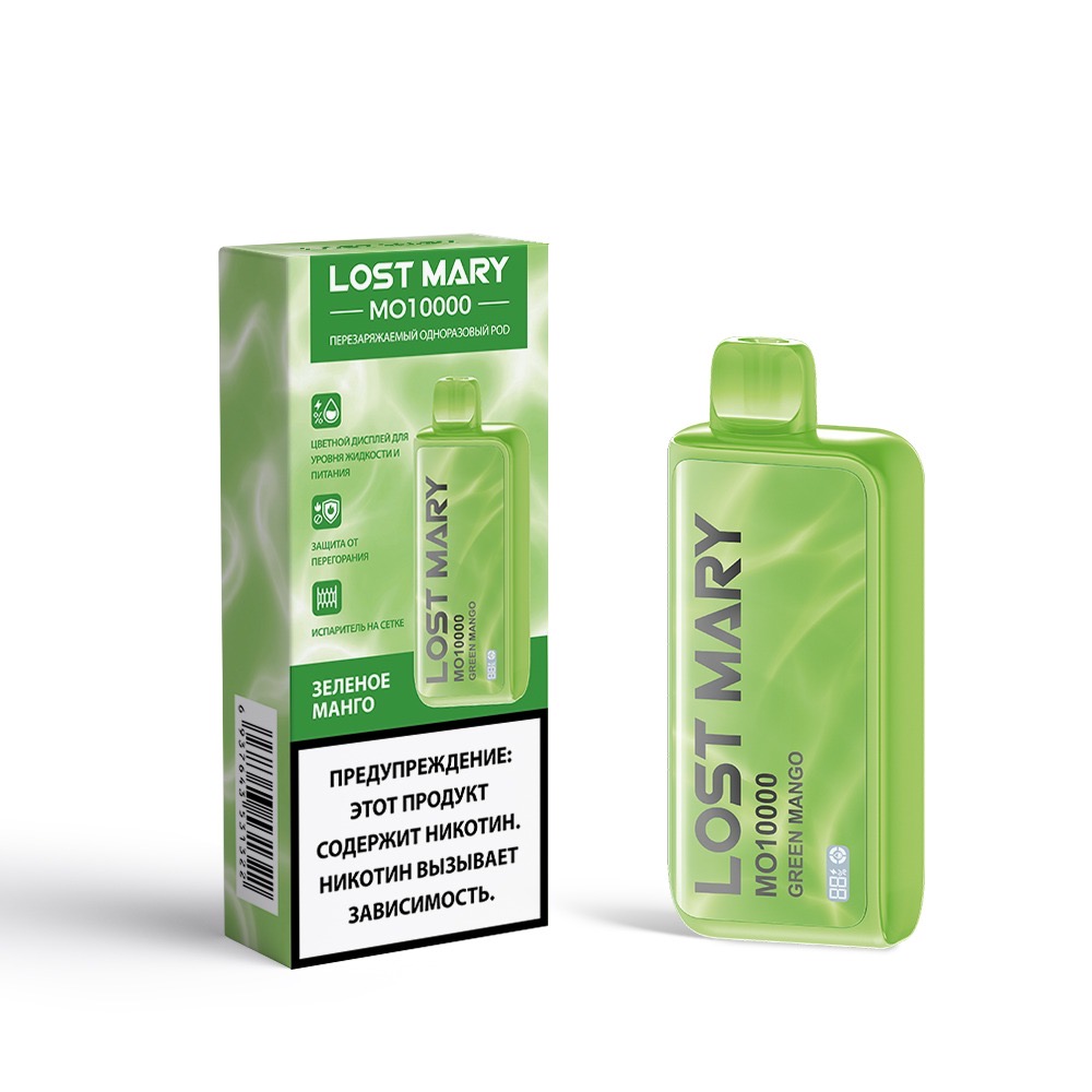 | LOST MARY количество в пачке1 шт | LOST MARY ценаруб | Аромат/вкусЗелёное Манго |