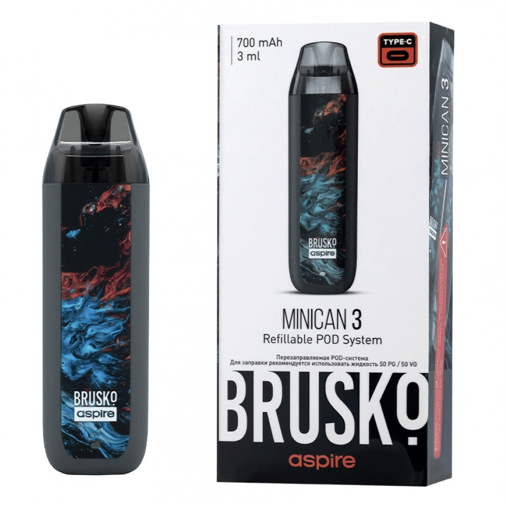 Перезаправляемая Под-Система Бруско Миникан 3 (Brusko Minican 3) 700 mah, Серый Флюид - купить в Мамадыше